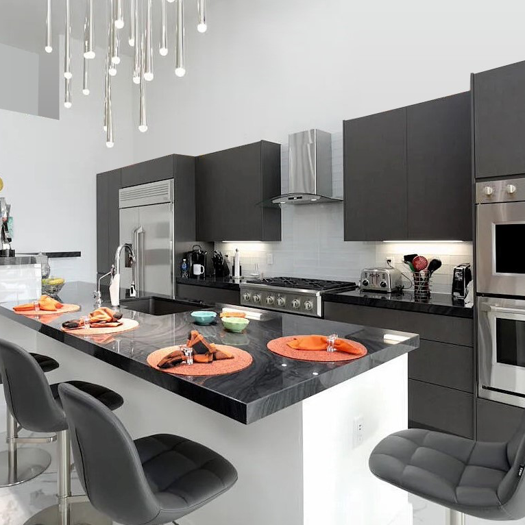 Italian Thermal Structured Veneers (TSV) two-sided panels offer the elegance of high-end European design with the benefits of 100% post-consumer recycled materials and 13-hour water resistance core for many finished. CARB2 Hardwood Particle Board.