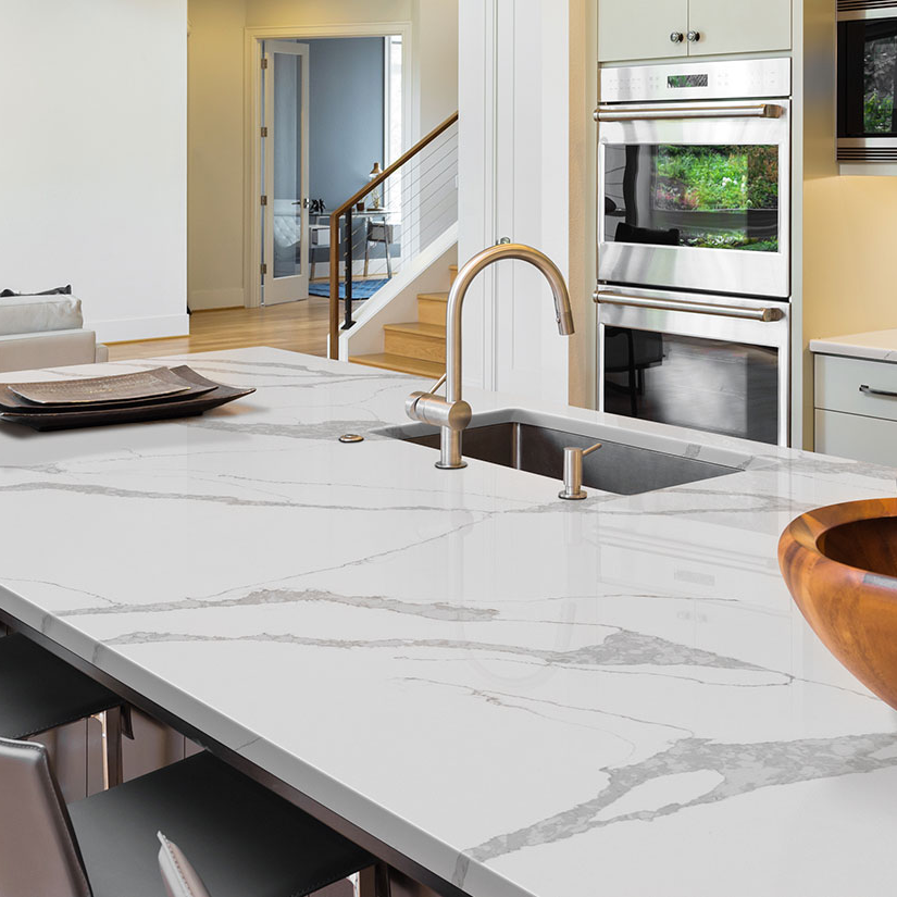 Naturally durable, maintenance free, and available in an endless array of designs and colors, Quartz surfaces are the perfect choice for any application. While quartz countertops are often called “engineered” or “man-made,” quartz is actually one of the hardest, most abundant natural elements. We combine high-quality, pure quartz with pigments and binder to create strong, compact slabs with unsurpassed performance.