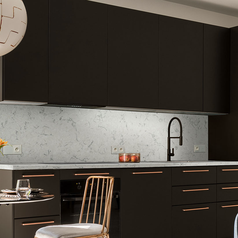 Naturally durable, maintenance free, and available in an endless array of designs and colors, Quartz surfaces are the perfect choice for any application. While quartz countertops are often called “engineered” or “man-made,” quartz is actually one of the hardest, most abundant natural elements. We combine high-quality, pure quartz with pigments and binder to create strong, compact slabs with unsurpassed performance.